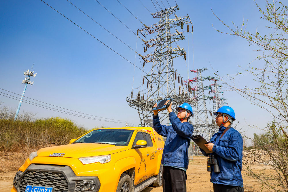4月10日,國(guó)網(wǎng)北京昌平供電公司員工在陽(yáng)坊鎮(zhèn)溫南路對(duì)重點(diǎn)線路開(kāi)展特巡。(國(guó)網(wǎng)北京分公司供圖)