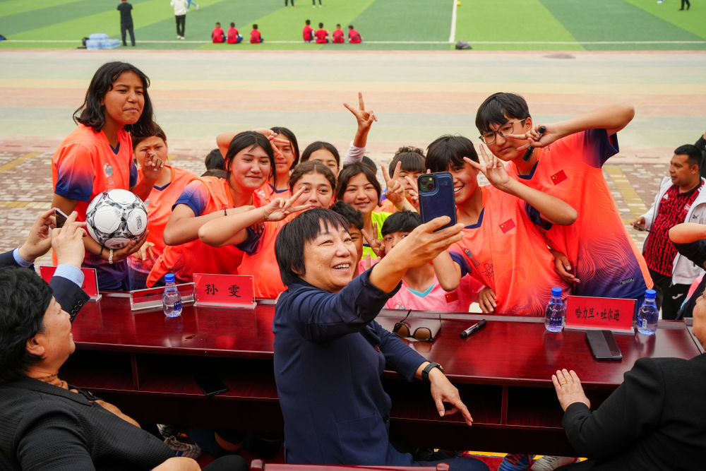 孫雯來(lái)到克州觀看她們的比賽并與大家合影