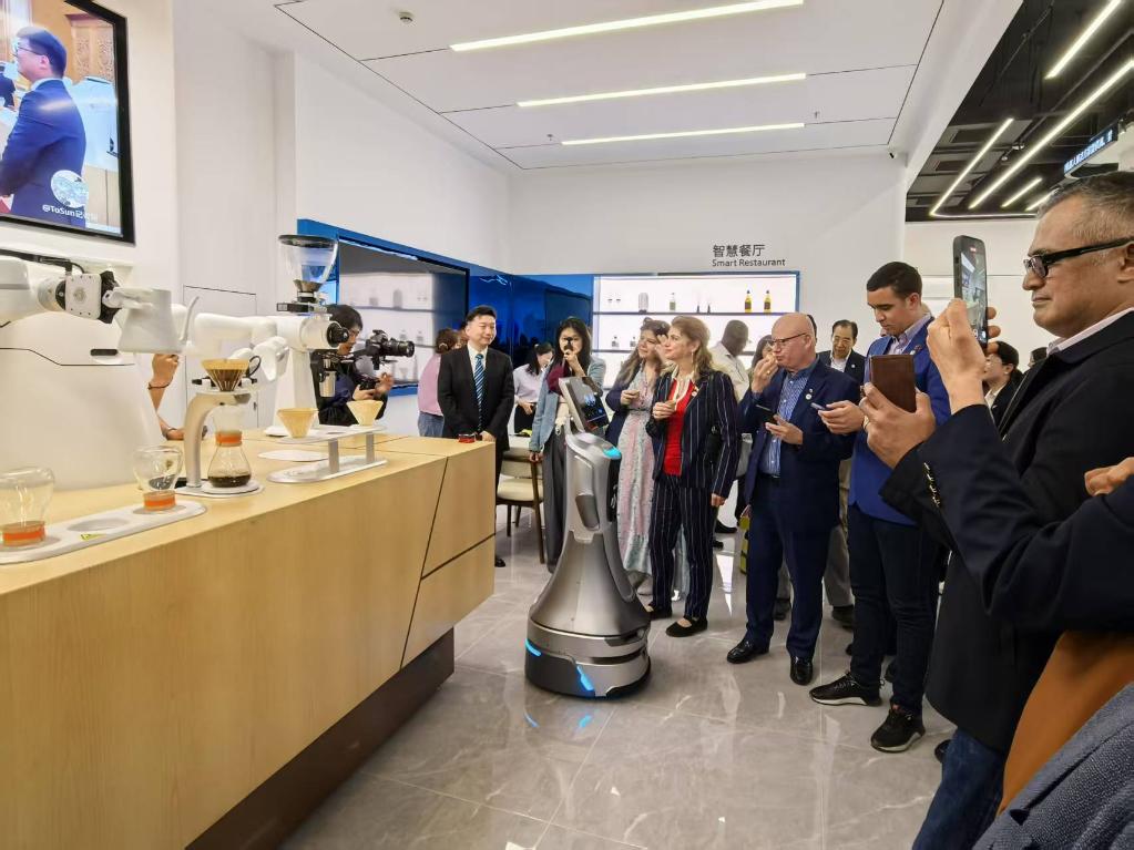 機器大廚、機器舞者、機器咖啡師……在九江機器人小鎮(zhèn),使節(jié)們與各種功能的機器人“親密接觸”,現(xiàn)場體驗智慧家居、智慧政務(wù)、咖啡機器人、無人餐廳帶來的便捷。