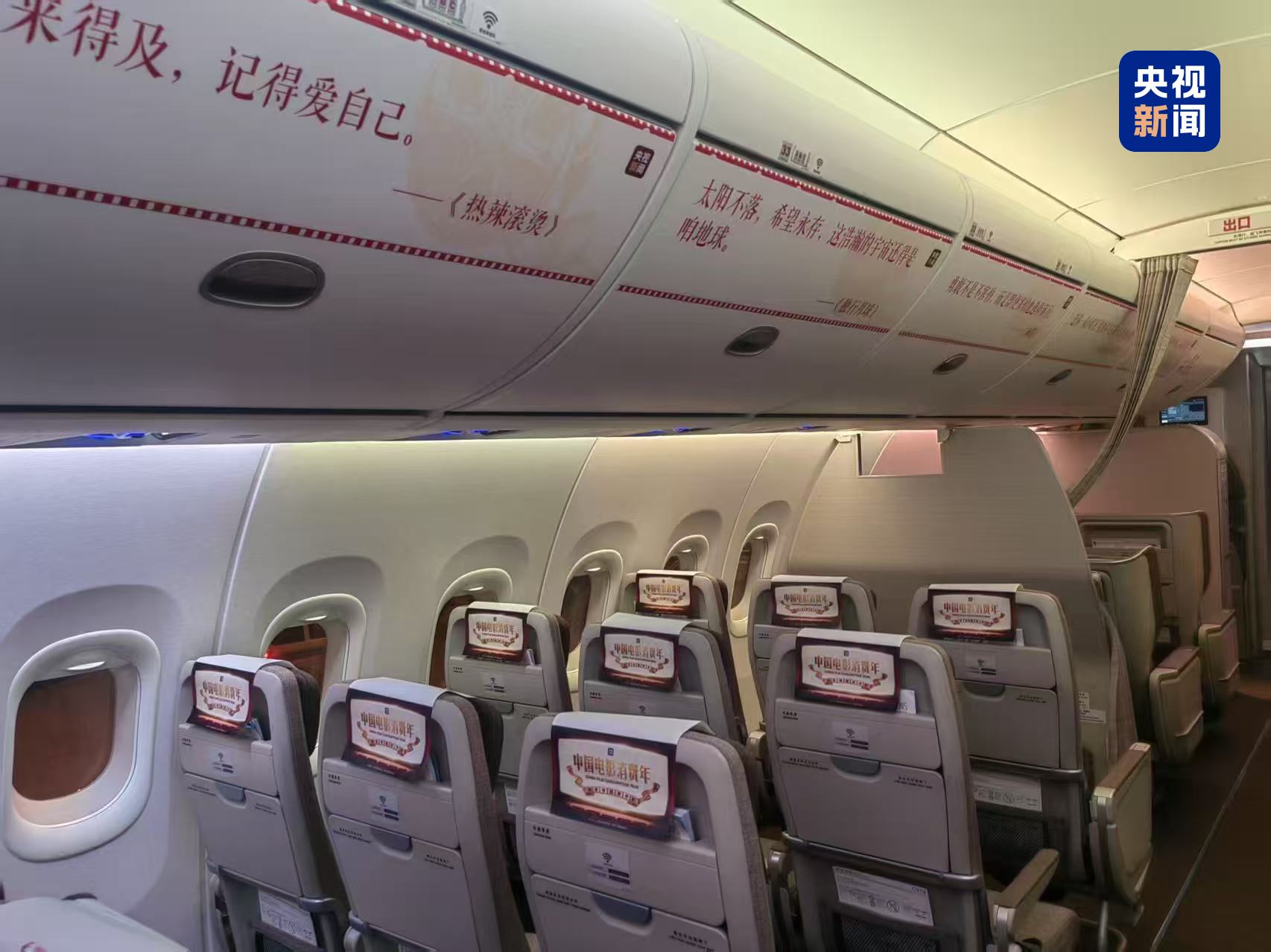 東方航空機艙內(nèi)展示眾多電影元素。