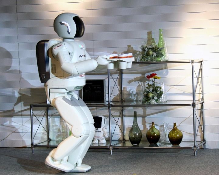 本世紀(jì)初,日本本田公司發(fā)布一款酷似太空宇航員的人形機(jī)器人ASIMO(阿西莫),能上下樓梯,聽懂語音指令。2013年美國波士頓動力公司發(fā)布的人形機(jī)器人Atlas在跑步機(jī)上健步如飛,還能跳躍、旋轉(zhuǎn)、翻滾等,它為災(zāi)難現(xiàn)場而設(shè)計,目標(biāo)是在化學(xué)泄漏、建筑倒塌等危險區(qū)域替代人類完成開關(guān)閥門、搬運等任務(wù)。