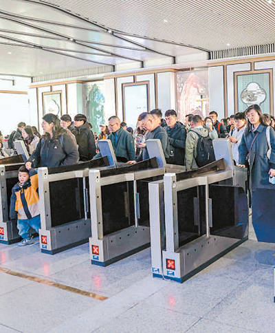近日,“水韻江蘇”主題旅游列車首發(fā),開啟了春天環(huán)游江蘇的序幕。該旅游列車分A、B線,A線由南通站至上海虹橋站往返,B線由上海站至徐州東站往返。圖為在揚州東站,游客檢票乘坐“水韻江蘇”旅游列車。任 飛攝(人民視覺)