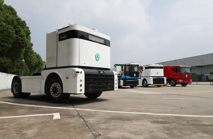 2023年9月26日,一輛西井科技的無(wú)人駕駛重卡Q-Truck(前)在位于上海的無(wú)人駕駛商用車(chē)聯(lián)合實(shí)驗(yàn)室場(chǎng)地上進(jìn)行動(dòng)態(tài)測(cè)試。新華社記者 方喆 攝