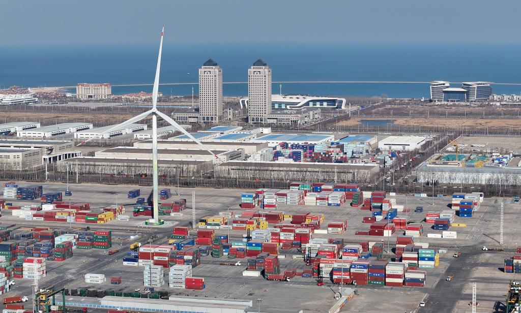 2024年3月20日拍攝的天津自貿(mào)試驗(yàn)區(qū)東疆片區(qū)一景(無人機(jī)照片)。新華社記者趙子碩 攝