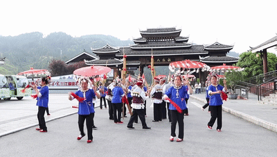 蘆笙村頭響,侗家迎客忙。在位于廣西柳州市三江侗族自治縣的程陽八寨,侗族的阿哥阿妹身著民族盛裝,吹著蘆笙,跳起踩堂舞,迎接八方游客的到來。