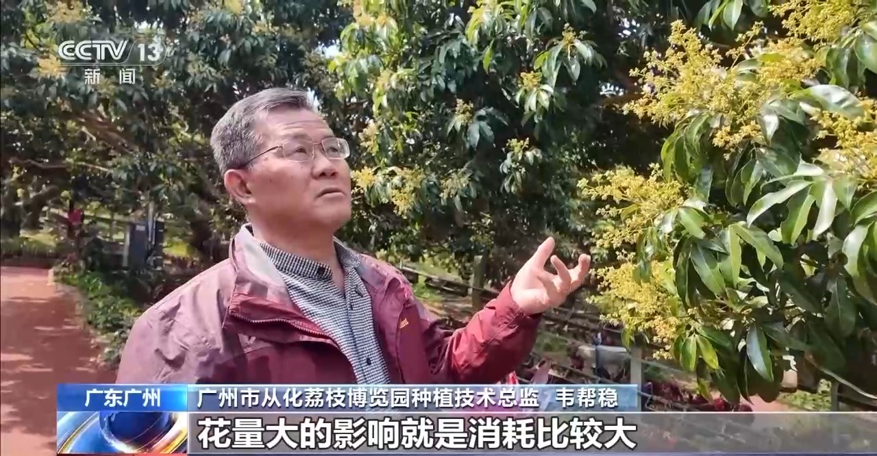 廣州市從化荔枝博覽園種植技術總監(jiān) 韋幫穩(wěn):今年花量比較大,花量大的話消耗比較大,所以我們說我們利用飛鳥給我們預警,就會告訴我們多少花量比較合適。既能達到豐產(chǎn),又能達到優(yōu)質。