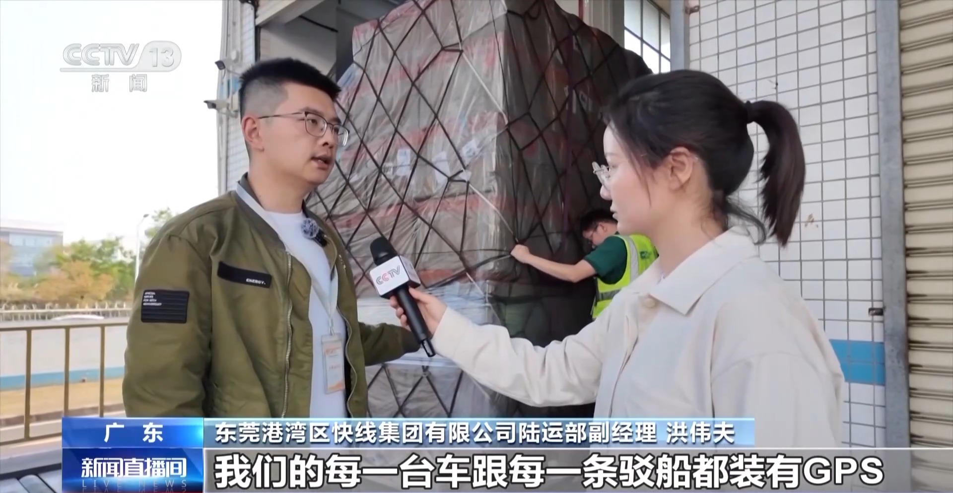 東莞港灣區(qū)快線集團(tuán)有限公司陸運(yùn)部副經(jīng)理 洪偉夫:我們的每一臺(tái)車跟每一條駁船都裝有GPS,其中車輛裝有電子關(guān)鎖,駁船的貨艙有紅外警報(bào),香港海關(guān)和內(nèi)地海關(guān)可以在行駛過程中,對(duì)這些貨物進(jìn)行遠(yuǎn)程監(jiān)管。