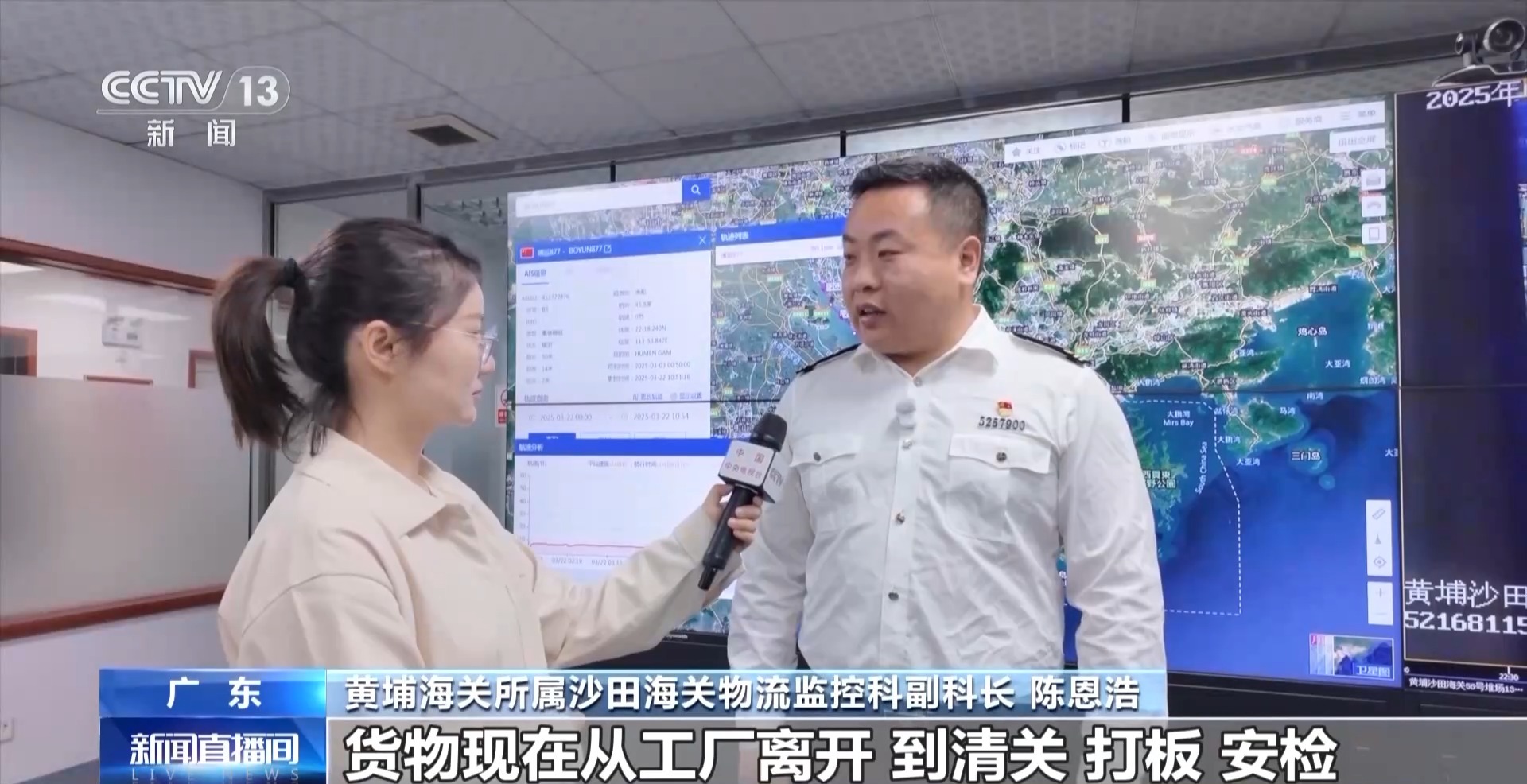 黃埔海關(guān)所屬沙田海關(guān)物流監(jiān)控科副科長 陳恩浩:貨物現(xiàn)在從工廠離開,到清關(guān)、打板、安檢、裝船以及發(fā)運(yùn)整個(gè)環(huán)節(jié),最快可以在14個(gè)小時(shí)內(nèi)完成。我們還在不斷優(yōu)化流程、提高效率,未來預(yù)計(jì)還可以節(jié)約2到3小時(shí)。
