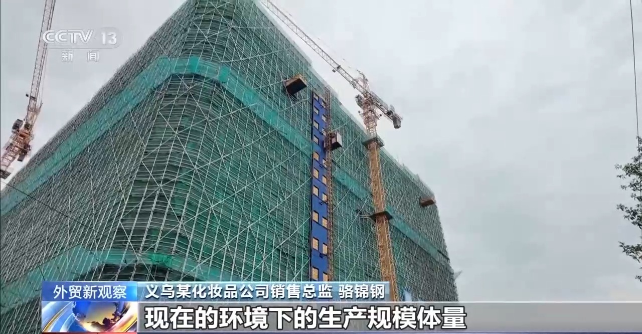 義烏某化妝品公司銷售總監(jiān) 駱錦鋼:我們這個(gè)園區(qū)幾乎是每個(gè)工廠都在改擴(kuò)建,主要是因?yàn)樵瓉淼睦吓f廠房已經(jīng)是不適合現(xiàn)在的環(huán)境下的生產(chǎn)規(guī)模體量,根據(jù)現(xiàn)在的復(fù)雜環(huán)境,在練內(nèi)功,所以未來的企業(yè)會打造成智能化、數(shù)字化更高端的這種生產(chǎn)型企業(yè)。