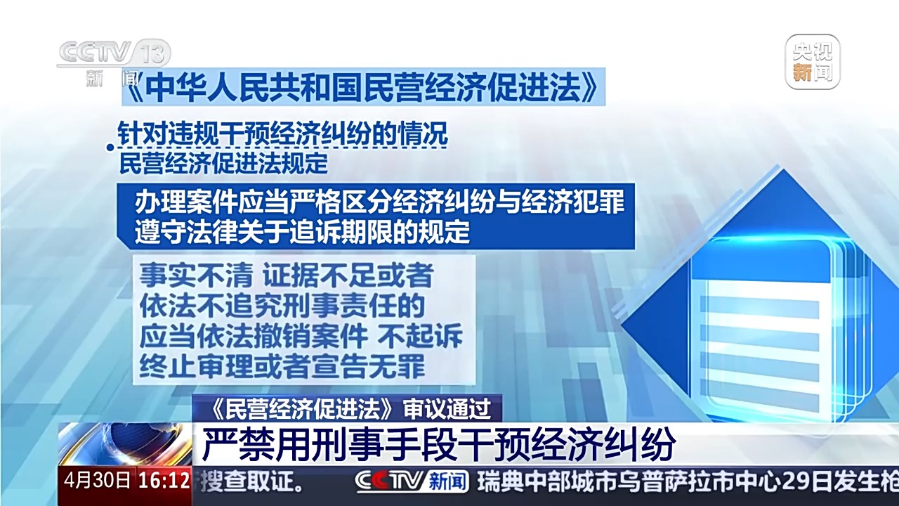針對(duì)實(shí)踐中存在的違規(guī)干預(yù)經(jīng)濟(jì)糾紛、異地執(zhí)法等情況,民營經(jīng)濟(jì)促進(jìn)法也作出了明確規(guī)定,嚴(yán)禁用刑事手段干預(yù)經(jīng)濟(jì)糾紛,加強(qiáng)異地執(zhí)法協(xié)作。