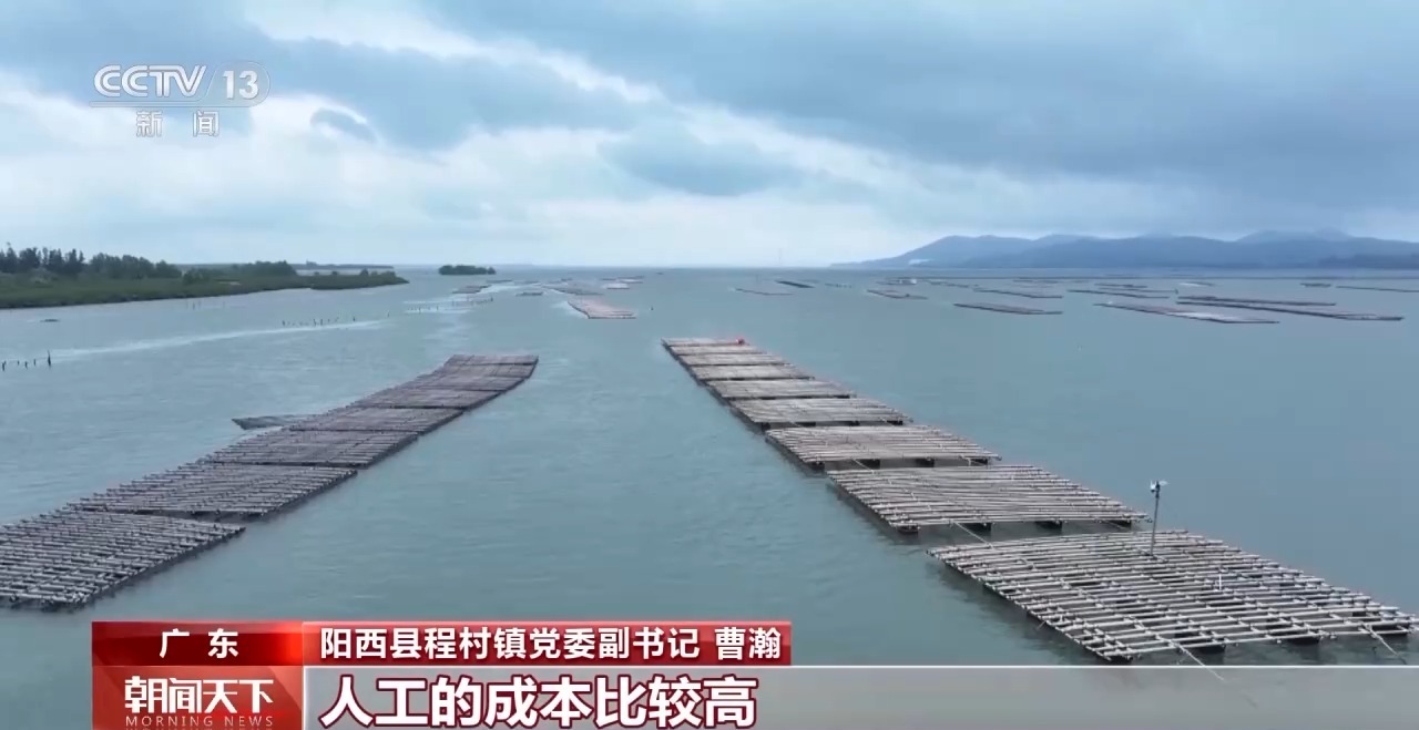 陽(yáng)西縣程村鎮(zhèn)黨委副書記 曹瀚:以前的立柱式養(yǎng)殖必須要有水泥樁,還要打樁進(jìn)去,人工的成本比較高。延繩吊養(yǎng)生蠔的時(shí)候,我們能夠及時(shí)根據(jù)海水咸濕度情況進(jìn)行轉(zhuǎn)移,有利于蠔盡快長(zhǎng)大。