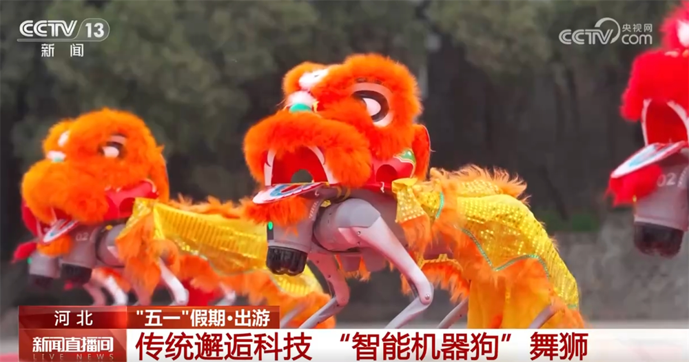 5月1日,在老龍頭景區(qū),醒獅技藝與智能機(jī)器狗的互動(dòng)表演《智舞雄獅》吸引了大批游客駐足、參與,4臺(tái)搭載智能交互系統(tǒng)的機(jī)器獅與醒獅隊(duì)同臺(tái)獻(xiàn)藝,現(xiàn)場游人沉浸式體驗(yàn)“長城+科技”的文旅新產(chǎn)品。