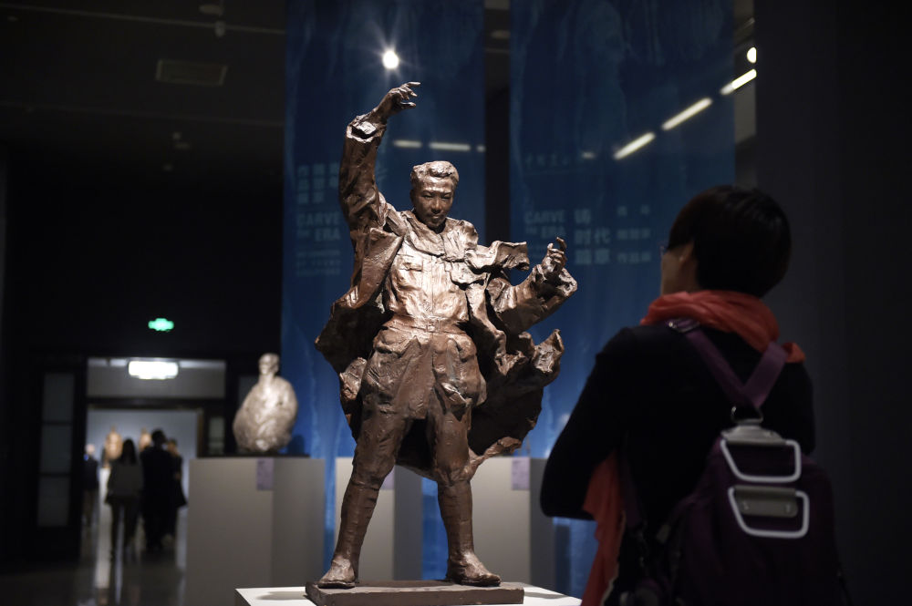 2018年4月1日,參觀者在北京的中國美術館參觀雕塑作品“冼星海”。