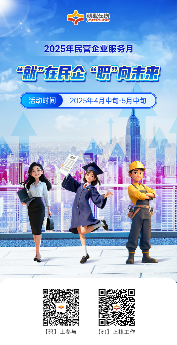為支持民營(yíng)經(jīng)濟(jì)發(fā)展,促進(jìn)高質(zhì)量充分就業(yè),按照人力資源社會(huì)保障部等6部門關(guān)于開(kāi)展2025年民營(yíng)企業(yè)服務(wù)月活動(dòng)安排,“就業(yè)在線”平臺(tái)開(kāi)展2025年民營(yíng)企業(yè)服務(wù)月線上招聘求職服務(wù)活動(dòng),助力民營(yíng)企業(yè)招聘用工和廣大勞動(dòng)者求職就業(yè)。