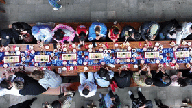 因為電影《哪吒2》而火爆“出圈”的貴陽越界影城,經(jīng)常舉辦“花式寵粉”的活動。比如在影城門口擺起具有當(dāng)?shù)靥厣摹敖z娃娃”長桌宴。