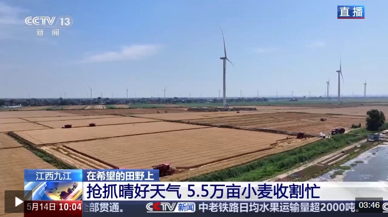 江西九江:搶抓晴好天氣 5.5萬畝小麥收割忙