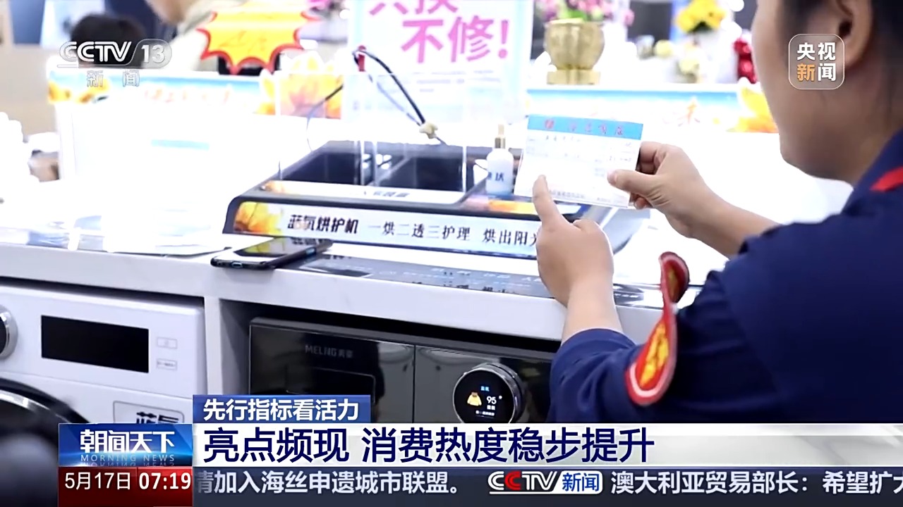 國家信息中心今天(17日)發(fā)布了一系列先行指標(biāo),記者從中發(fā)現(xiàn),4月份以來,在一系列宏觀政策協(xié)同發(fā)力下,消費、投資、工業(yè)生產(chǎn)等多領(lǐng)域保持向好態(tài)勢。