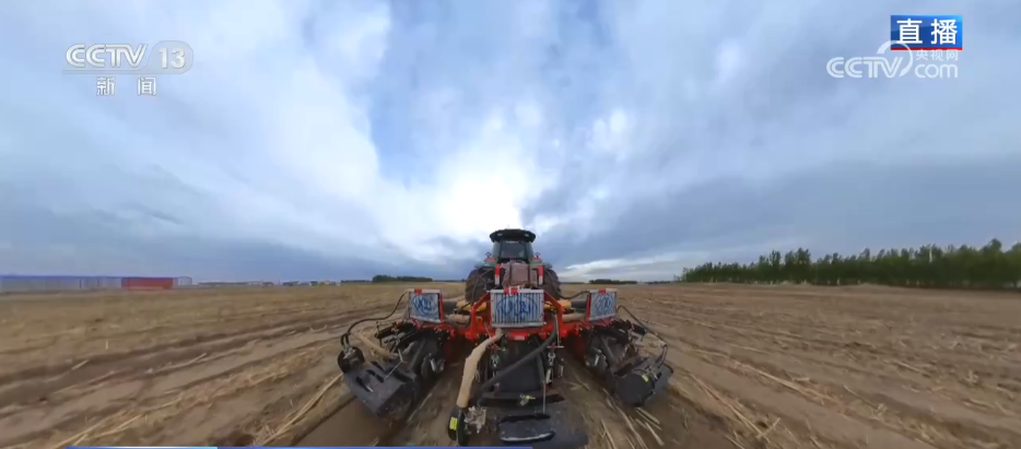 在吉林省通榆縣興隆山鎮(zhèn)的一處玉米示范田,當?shù)負屪デ绾锰鞖?,進行最后100畝玉米的播種作業(yè)?,F(xiàn)場幾臺條耕機馬力全開,穿梭在廣袤的田野間。緊隨條耕機之后的播種機,依托搭載的北斗導航系統(tǒng)精準定位播種。不到十分鐘,十畝玉米田便完成從耕作到播種的全流程作業(yè)。據(jù)合作社的負責人介紹,3000畝的玉米田大約2周左右就可以完成播種。