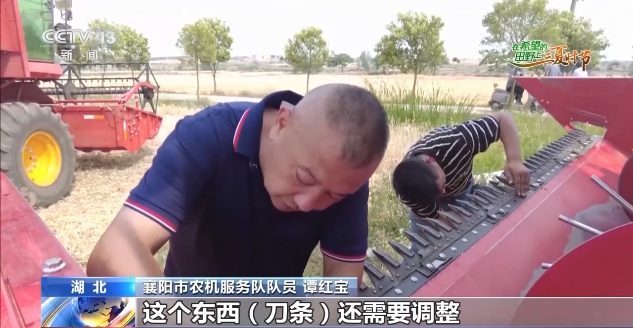 農機維修也是夏收中非常重要的一個環(huán)節(jié)。在湖北省襄陽市襄州區(qū)黃龍鎮(zhèn)潘明村的1000畝大田里,6臺收割機正趕在雨前搶收。突然,一臺收割機出現(xiàn)故障止步不前,機手撥打維修電話20分鐘后,農機服務車趕到了麥田旁。經過檢修發(fā)現(xiàn),這臺收割機刀條發(fā)生了斷裂。