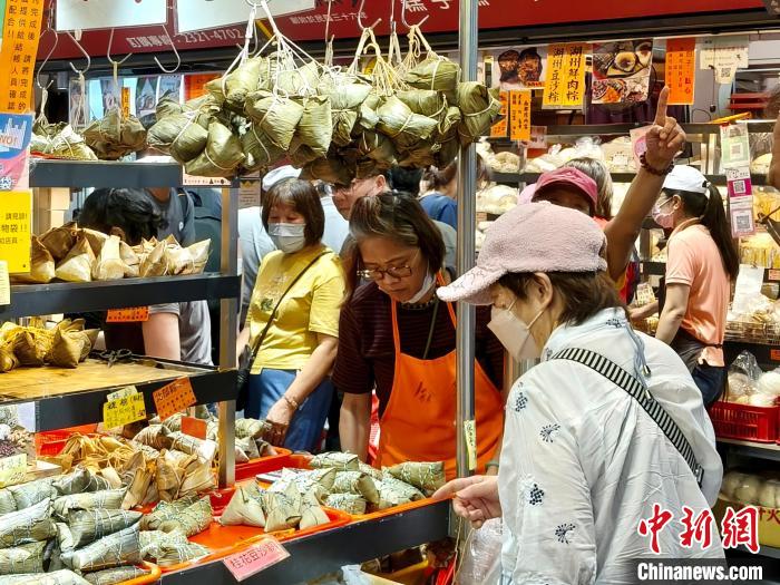5月30日,臺灣迎來端午節(jié)連假,各大市場粽香四溢,民眾紛紛前往選購粽子等節(jié)慶美食。圖為臺北南門市場,民眾排隊(duì)選購粽子。中新社記者 張曉曦 攝