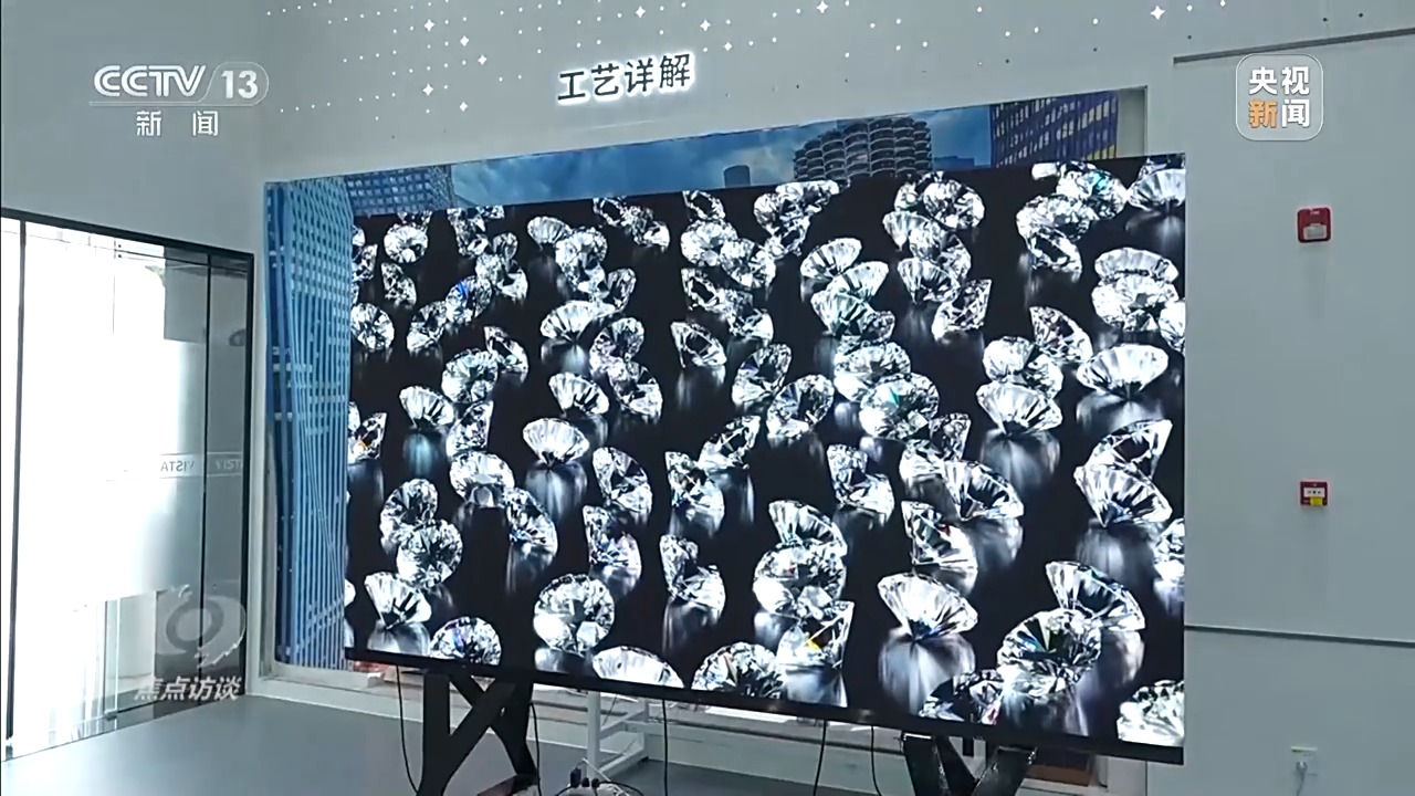 維信諾Micro-LED技術(shù)負(fù)責(zé)人、成都辰顯光電有限公司總經(jīng)理 黃秀頎:這款產(chǎn)品歷經(jīng)了8年的研發(fā)時(shí)間,到現(xiàn)在推出全球最新的135英寸TFT基Micro-LED(顯示屏)。它的特點(diǎn),亮度非常高,而且色彩非常細(xì)膩,還原度很高。但是這塊屏是拼接出來的,上面總共有2400萬顆LED發(fā)光點(diǎn),大的135英寸里面有200片屏,每個(gè)屏還要把它組裝成箱體,這里有25個(gè)箱體。可以根據(jù)客戶的需求定制大小,只要把箱體拼上去就可以無限擴(kuò)展,現(xiàn)在拼縫控制的是幾十個(gè)微米量級(jí),大概就是頭發(fā)絲直徑的五分之一。