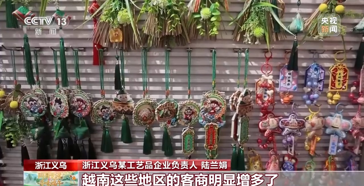 浙江義烏某工藝品企業(yè)負責人 陸蘭娟:以前香囊的消費群體以國內(nèi)為主,這兩年,越來越多的外國客商來咨詢。前年賣出了15萬個左右,去年訂單翻了一番,有30萬個。那今年的訂單也明顯超過了過去,尤其是新加坡、馬來西亞、越南這些地區(qū)的客商明顯增多。