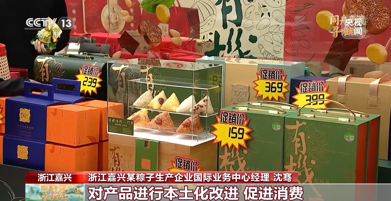 浙江嘉興某粽子生產(chǎn)企業(yè)國際業(yè)務(wù)中心經(jīng)理 沈騫:我們在直播中會展示粽子制作過程、食品溯源以及科普習俗,讓國外消費者了解粽子文化。我們還積極參加一些國內(nèi)外的展會,結(jié)合當?shù)匚幕拖M習慣,對產(chǎn)品進行本土化改進,促進消費。今年,我們的粽子出口到了柬埔寨的商超和網(wǎng)購平臺,在韓國大棗粽和豆沙粽非常受歡迎。