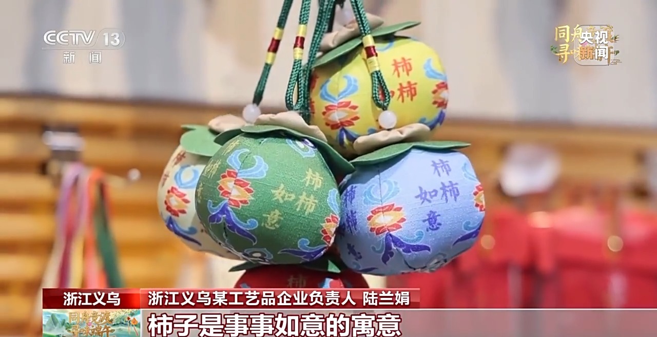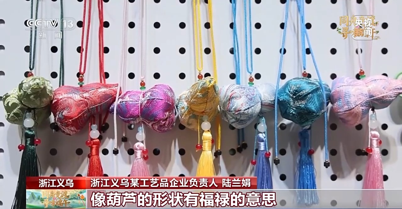 義烏某工藝品企業(yè)負責人 陸蘭娟:今年,在香囊的外觀設(shè)計上面,我們結(jié)合了中國傳統(tǒng)節(jié)日祝福的元素,設(shè)計了立體葫蘆、柿子等款式。像葫蘆的形狀有福祿的意思;柿子有事事如意的寓意,都是今年的“爆款”。
