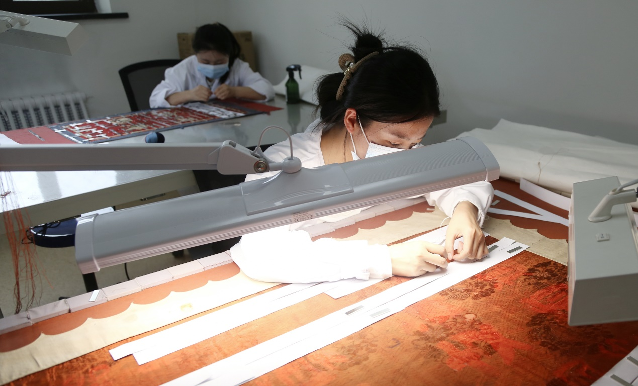 修復人員正在對紙質(zhì)文物進行修復