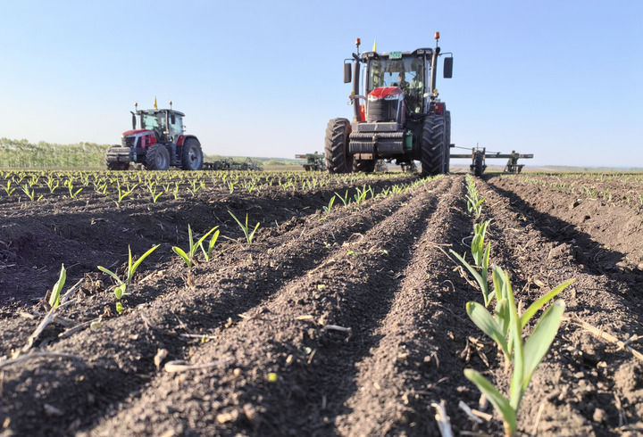 2025年5月23日,在北大荒集團(tuán)黑龍江建設(shè)農(nóng)場(chǎng)有限公司第三管理區(qū),農(nóng)機(jī)工人駕駛搭載北斗衛(wèi)星導(dǎo)航自動(dòng)系統(tǒng)的大型中耕深松機(jī)械,對(duì)剛出苗的玉米地塊進(jìn)行深松放寒作業(yè)。新華社發(fā)(許穎獻(xiàn)攝)