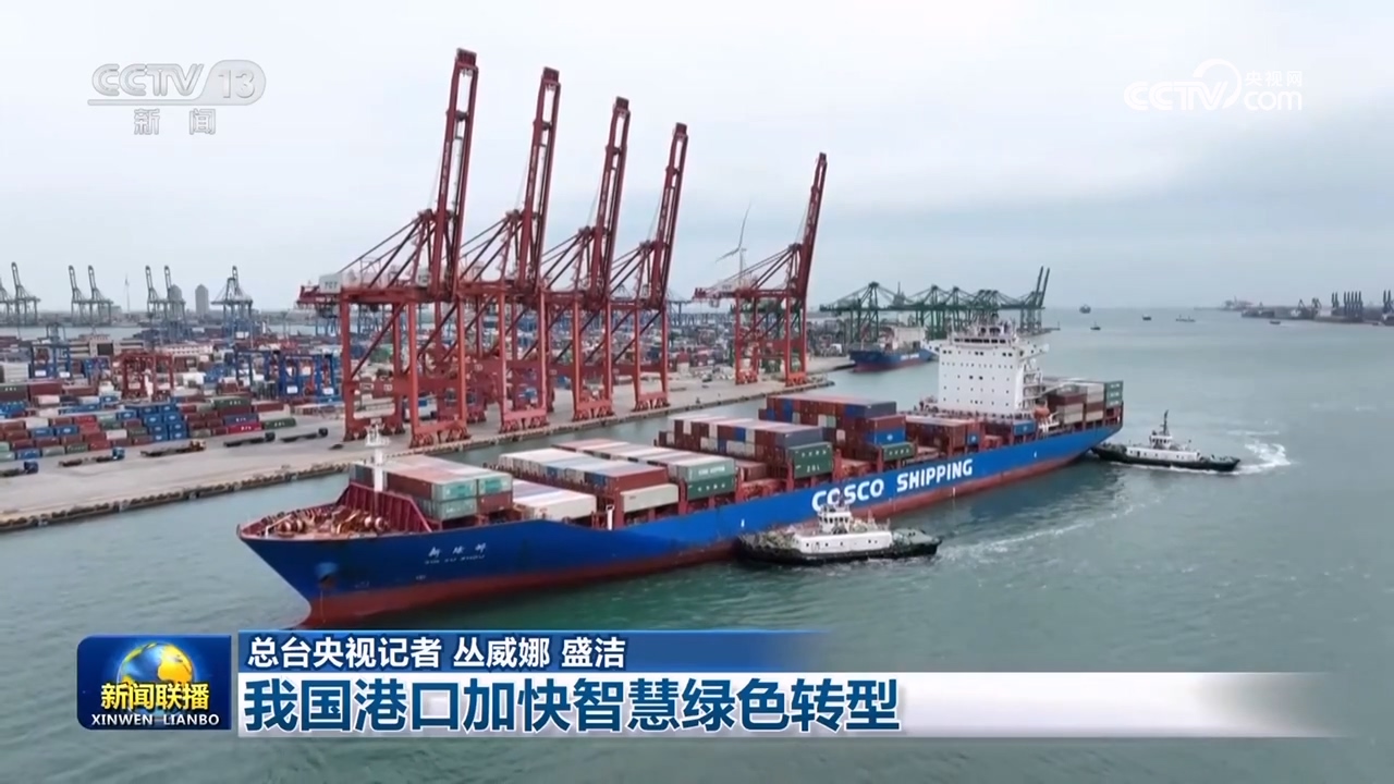 交通運(yùn)輸部數(shù)據(jù)顯示,今年1—4月,我國(guó)港口完成集裝箱吞吐量1.1億標(biāo)箱,同比增長(zhǎng)7.9%。貨物運(yùn)輸高效流轉(zhuǎn),綠色低碳設(shè)施設(shè)備也在推動(dòng)港口可持續(xù)發(fā)展。在天津港,這艘集裝箱船剛剛靠泊,岸電系統(tǒng)就開始為船舶供電,大大降低了靠港期間的污染物排放。