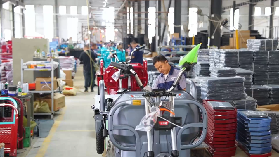 在四川眉山天府新區(qū),記者在雙勝新能源車(chē)業(yè)有限責(zé)任公司看到,工人們正緊鑼密鼓組裝一批即將發(fā)往非洲、東南亞的電動(dòng)三輪車(chē)。