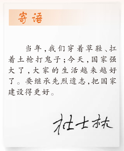 當(dāng)年盼望的好日子已成為眼下的日常生活,杜士林滿心欣慰更滿懷期待,“好日子是戰(zhàn)士們用鮮血換來的。我們要保持艱苦奮斗的精神,珍惜現(xiàn)在的美好生活。”杜士林說。