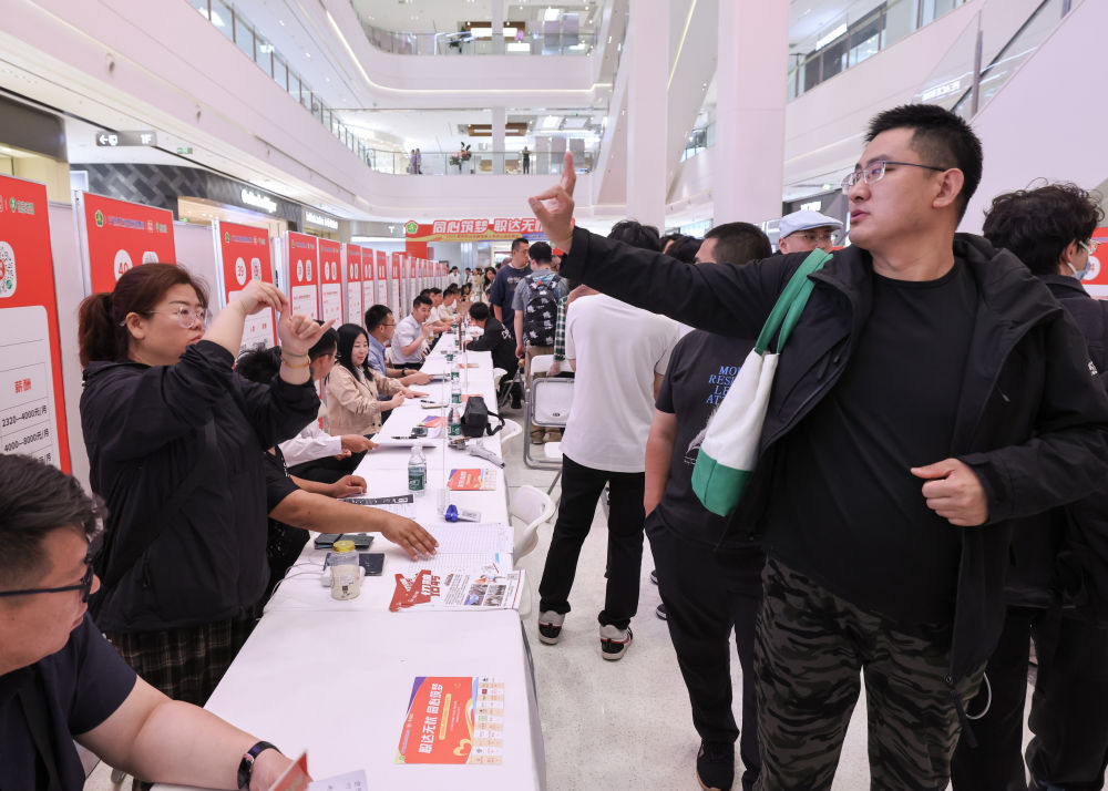 5月8日,在浙江省嘉興市南湖區(qū)零工市場(chǎng)的一場(chǎng)零工招聘會(huì)上,求職者查看各類(lèi)崗位。新華社記者 徐昱 攝