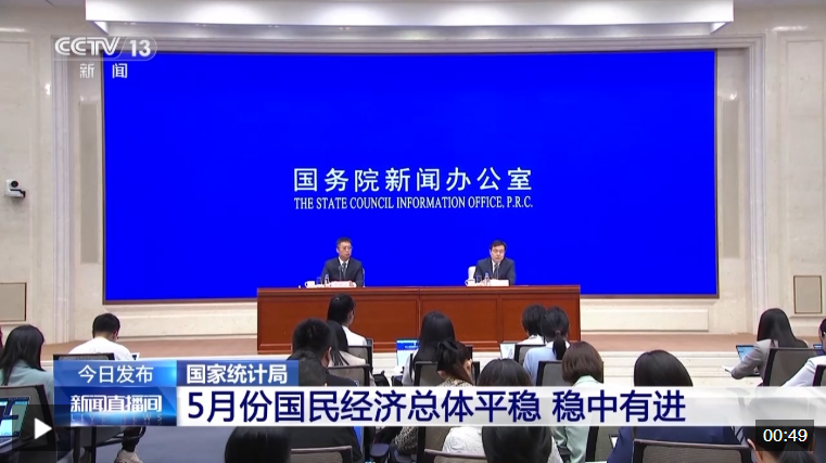 今天(6月16日)上午10時,國務院新聞辦召開新聞發(fā)布會,國家統(tǒng)計局介紹了5月份國民經(jīng)濟運行情況。相關負責人表示,隨著我國加緊實施更加積極有為的宏觀政策,5月份,國民經(jīng)濟頂住壓力平穩(wěn)運行,生產(chǎn)需求穩(wěn)定增長,就業(yè)形勢總體穩(wěn)定,新動能成長壯大,高質(zhì)量發(fā)展向優(yōu)向新。