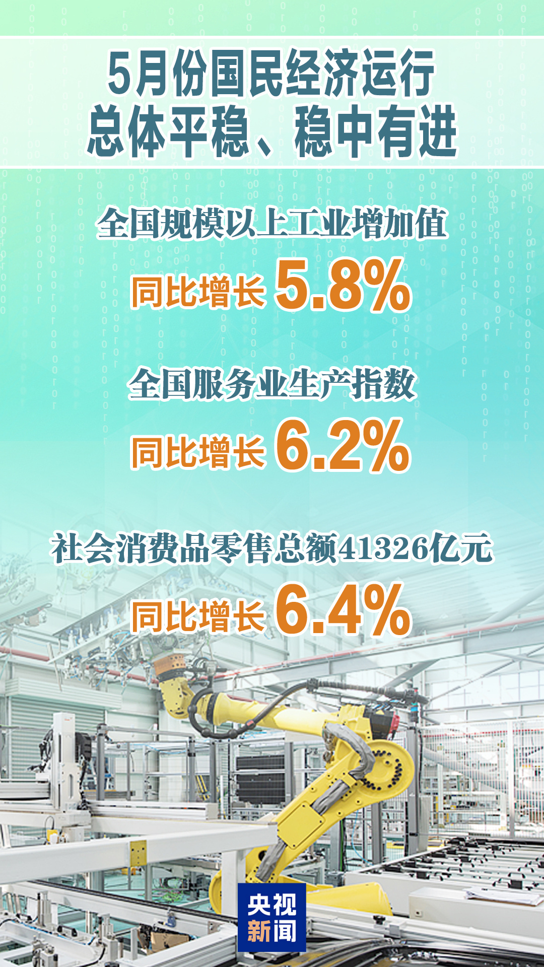 總的來看,5月份,隨著政策組合效應持續(xù)釋放,穩(wěn)經(jīng)濟促發(fā)展效果顯現(xiàn),國民經(jīng)濟保持總體平穩(wěn)、穩(wěn)中有進發(fā)展態(tài)勢,充分展現(xiàn)了我國經(jīng)濟的韌性和活力。
