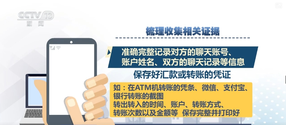 然后記住抓緊梳理收集相關(guān)證據(jù),準(zhǔn)確完整記錄對(duì)方的聊天賬號(hào)、賬戶姓名、雙方的聊天記錄等信息;保存好匯款或轉(zhuǎn)賬的憑證,如在ATM機(jī)轉(zhuǎn)賬的憑條、微信、支付寶、銀行轉(zhuǎn)賬的截圖;轉(zhuǎn)出轉(zhuǎn)入的時(shí)間、賬戶、轉(zhuǎn)賬方式、轉(zhuǎn)賬次數(shù)以及金額等,保存完整并打印好。最后,您需要盡快前往最近的派出所,進(jìn)行現(xiàn)場(chǎng)報(bào)案。在這里,您要配合公安機(jī)關(guān)做好詢問(wèn)筆錄,提供相關(guān)證據(jù)。
