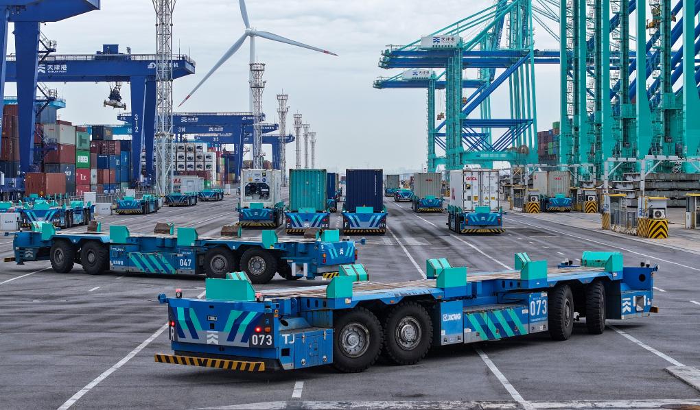 天津港第二集裝箱碼頭一景(無(wú)人機(jī)照片)。新華社記者趙子碩 攝