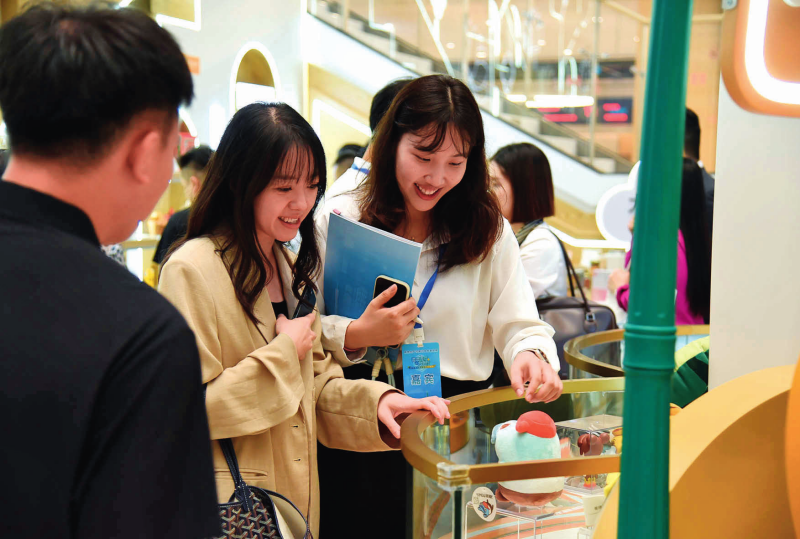 港澳青年在橫琴政務服務中心的“澳品薈”橫琴展示區(qū)瀏覽澳門創(chuàng)意產(chǎn)品(2024年9月23日攝)洪澤華攝/本刊