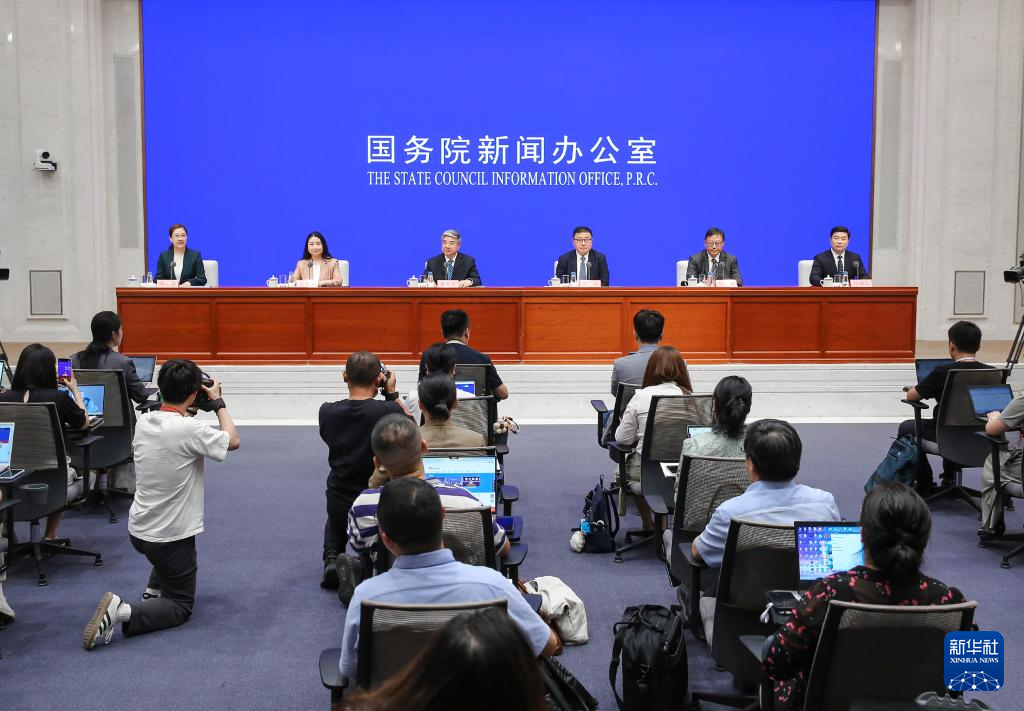 7月4日,國務院新聞辦公室在北京舉行國務院政策例行吹風會,商務部部長助理唐文弘,上海市委常委、常務副市長吳偉和商務部自貿(mào)區(qū)港建設協(xié)調(diào)司司長孟華婷,中國人民銀行研究局負責人紀敏,海關(guān)總署自貿(mào)區(qū)和特殊區(qū)域發(fā)展司負責人杜朝新介紹中國(上海)自由貿(mào)易試驗區(qū)全面對接國際高標準經(jīng)貿(mào)規(guī)則試點成效及復制推廣有關(guān)情況,并答記者問。新華社發(fā)(劉健 攝)