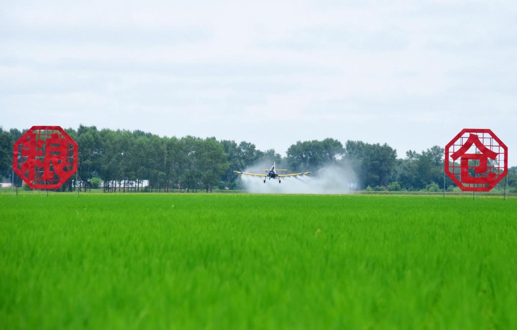 7月1日,在北大荒集團(tuán)黑龍江綏濱農(nóng)場(chǎng)有限公司龍泉管理區(qū),一架農(nóng)用飛機(jī)進(jìn)行航化作業(yè)(無(wú)人機(jī)照片)。新華社發(fā)(李興攝)