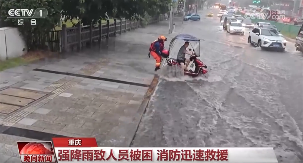 重慶也受到強(qiáng)降雨的影響。在大渡口區(qū)鋼花路紅樓醫(yī)院附近,消防人員發(fā)現(xiàn)一名摩托車騎手被困水中,有被沖走的危險(xiǎn)。經(jīng)過救援,該男子被轉(zhuǎn)移至安全地帶。據(jù)介紹,目前,大渡口區(qū)消防救援局共處置相關(guān)警情16起,出動(dòng)130余人次參與救援工作。