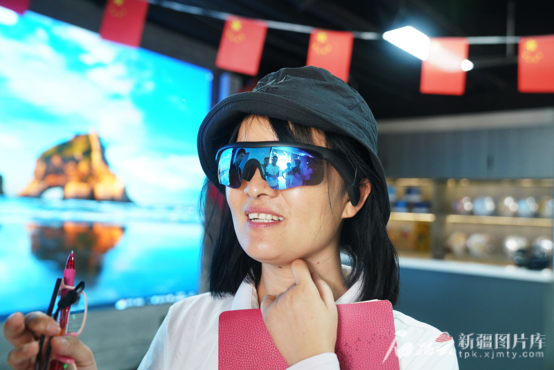 6月30日,在喀什綜合保稅區(qū)全球貿易通新疆喀什中亞出口商品選品中心,記者王娜體驗了一款出口的智能眼鏡,該眼鏡可隨機翻譯一百多種語言。