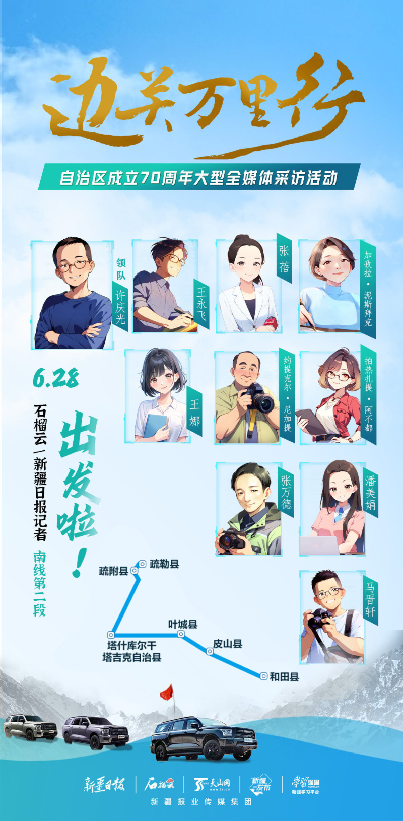 從6月29日開始,“邊關萬里行——自治區(qū)成立70周年大型全媒體采訪活動”南線采訪團隊先后前往喀什市、疏附縣、疏勒縣、伽師縣、塔什庫爾干塔吉克自治縣、葉城縣等地進行采訪。從喀什古城到農家小院,從城區(qū)到工業(yè)園區(qū),從邊境派出所到紅其拉甫國門……記者們一直在路上記錄70年來的發(fā)展變遷。