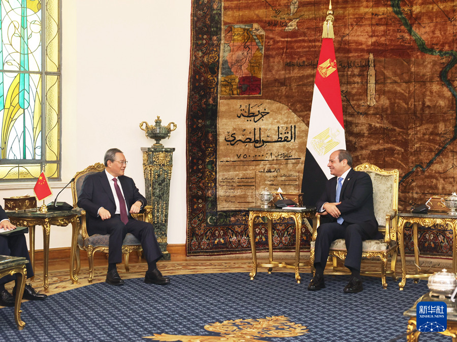 李強首先轉(zhuǎn)達習(xí)近平主席對塞西總統(tǒng)的親切問候。李強表示,近年來,在兩國元首戰(zhàn)略引領(lǐng)下,中埃關(guān)系蓬勃發(fā)展。中方愿同埃方一道,以明年中埃建交70周年為契機,賡續(xù)傳統(tǒng)友誼,鞏固政治互信,在涉及彼此核心利益問題上繼續(xù)堅定相互支持,不斷豐富中埃全面戰(zhàn)略伙伴關(guān)系內(nèi)涵,推動兩國各領(lǐng)域合作取得更多成果,朝著構(gòu)建面向新時代的中埃命運共同體的目標持續(xù)邁進。