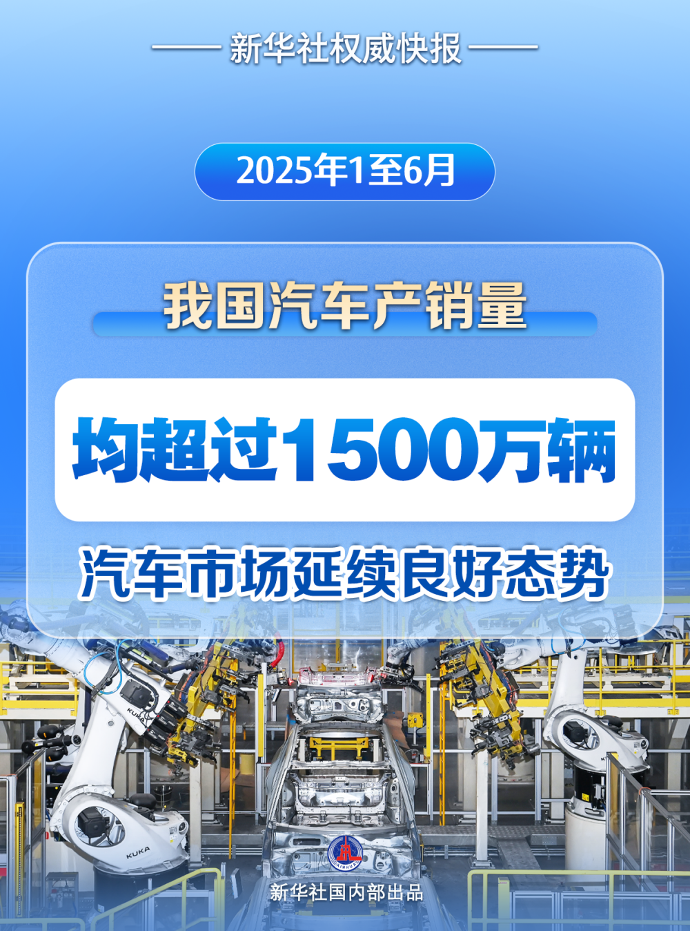 上半年我國汽車產(chǎn)銷量首次雙超1500萬輛