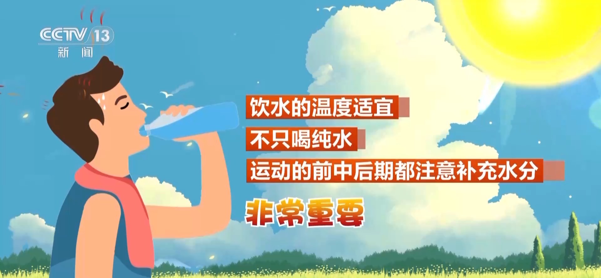 專家介紹,飲水的溫度適宜、不只喝純水、運(yùn)動(dòng)的前中后期都注意補(bǔ)充水分,是非常重要的。