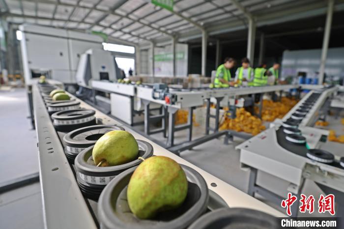 在鎮(zhèn)上新建的百里洲砂梨智慧產(chǎn)業(yè)園,園內(nèi)的精細(xì)化檢測分選設(shè)備令人眼前一亮:自動化分選線上,每顆砂梨都要通過“X光體檢”,重量、糖度、黑心等內(nèi)部指標(biāo)合格方能進(jìn)入包裝環(huán)節(jié)。
