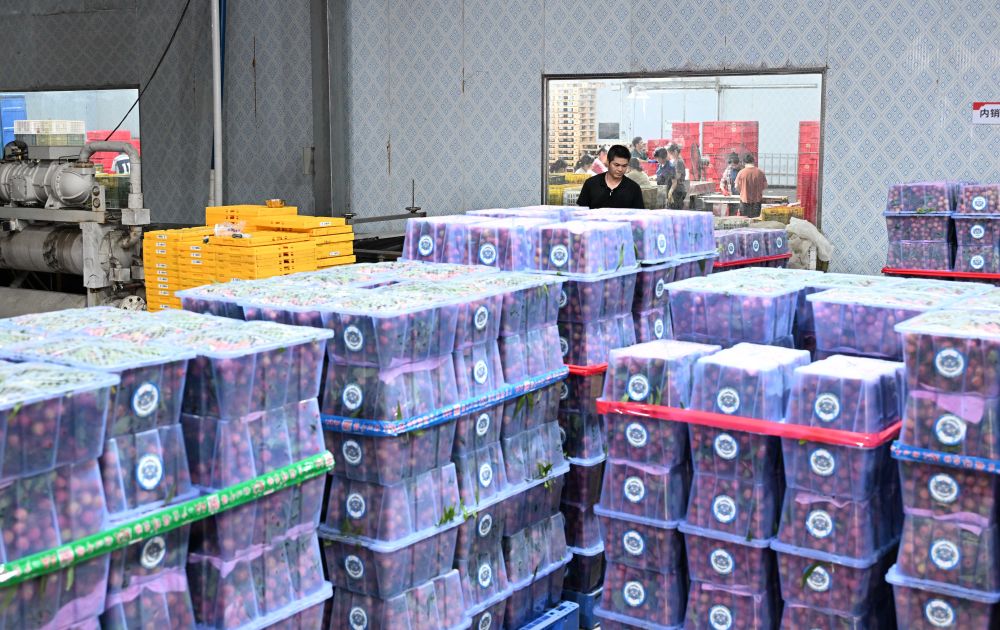 這是6月4日在廣東茂名高州市廣東銘景農業(yè)發(fā)展有限公司車間內拍攝的打包好的出口荔枝。新華社記者 鄧華 攝