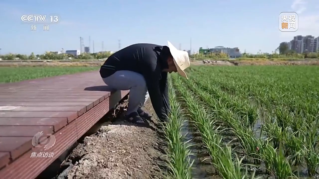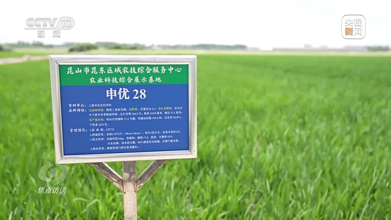 除了湖南,全國(guó)各地都在進(jìn)行良種的推廣選育,記者在江蘇昆山也看到新品種的推廣。7月7日這天,江蘇昆山的氣溫達(dá)到35℃。今年高溫來得早,這幾天室外溫度基本上都在35℃以上。昆山高新區(qū)白魚潭村的一片稻田里,種植大戶丁少坤冒著酷暑蹲在田埂上。